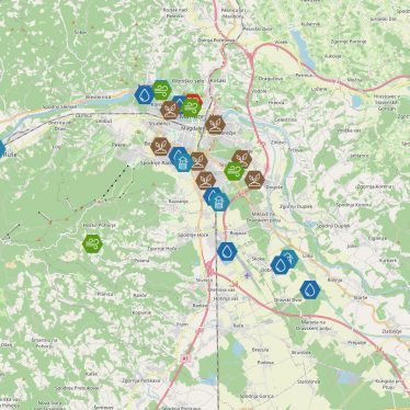 Pregledovalnik prikazuje informacije o okolju in zdravju, ki se jih zbira v Mestni občini Maribor. Trenutno se v sistemu vodi 5 različnih skupin podatkov, ki so predstavljena z različnimi ikonami: